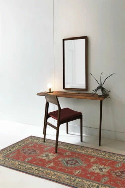 Inspired by Kazak kilim rug designs, Ademi Paprika Red Rug blends intricate pattern work with rich, elegant hues of ember, sunburst, rust red, orange, and sage green. Styled in true Persian rug fashion, this worldly accent brings instant sophistication to any space.