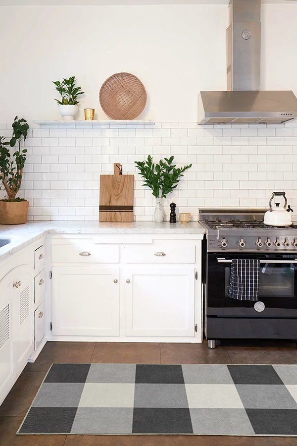 Bring a rustic charm to your decor with our Buffalo Plaid Black & White Rug. Simple yet stylish, this rug features a checkered design in high-contrast hues of black and white. Made from our water-resistant, stain-resistant, and machine-washable low-pile Chenille material.