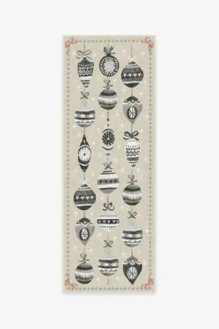 Reminiscent of holiday seasons past, our Festive Garland Warm Grey Rug features strings of vintage-style ornaments tinted in a modern color palette of neutral grey and titanium white and framed by sparkling stars and red bows. Made from our water-resistant, stain-resistant, and machine-washable low-pile Chenille material.