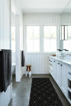 Influenced by the crowning achievements of mid-century modern architecture and design, this Geometrix Black rug is the essence of industrial decor. It proudly features a graphic and linear star motif in liquorice, graphite, and London fog. You’ll easily create a cool vibe with this floor covering for any modern, industrial, eclectic or boho-style home.