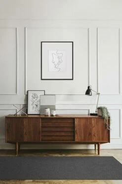 Our place-anywhere Heathered Solid Charcoal Rug features a woven-textured design in solid neutral grey color.