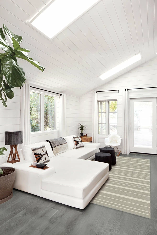 Our classic Hudson StripeοΏ½οΏ½Stone rug is designed with a modern style of bold and fine lines colored in grey and sand.