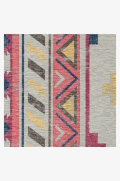 Our Kilim Batik Pink Rug enlivens any room with its vibrant color and geometric design inspired by Turkish kilim rugs. Rendered in cotton candy pink, complemented by hints of navy blue, silver taupe, dandelion yellow, ash grey, rouge, and watermelon, this colorful rug will add energy to any Scandinavian, modern, or bohemian-themed space.