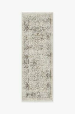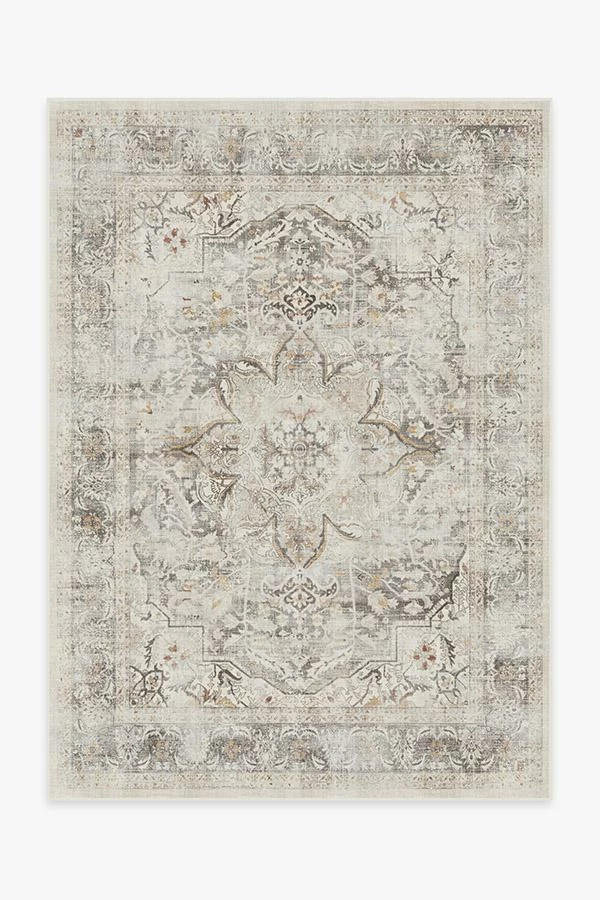 Warm and rustic. Shades of cream, brown, and hazel blend together in this rug to create a beautifully rich, distressed design featuring a floral medallion and border. Water-resistant, stain-resistant, and machine-washable.