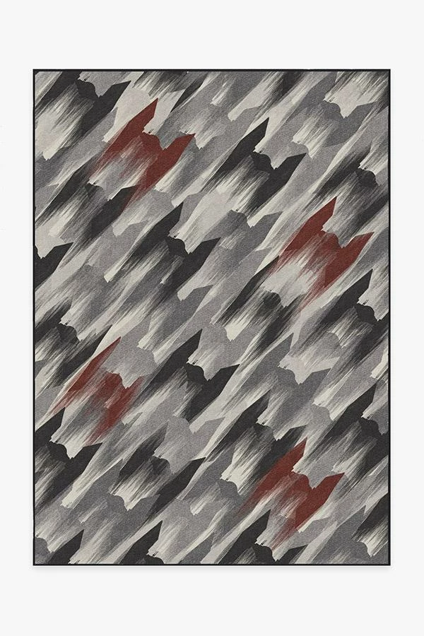 TIE Fighter Houndstooth Black Rug showcases the Empire in all of its evil glory. Tinted in gunmetal and grey, with pops of wine red on a background of pearl, this rug features a fleet of TIE fighters, the revered symbol of the Imperial fleet, zooming through space. The ships are drawn with brushstroke-like edges to show movement and are diagonally laid out to form a classic houndstooth pattern.