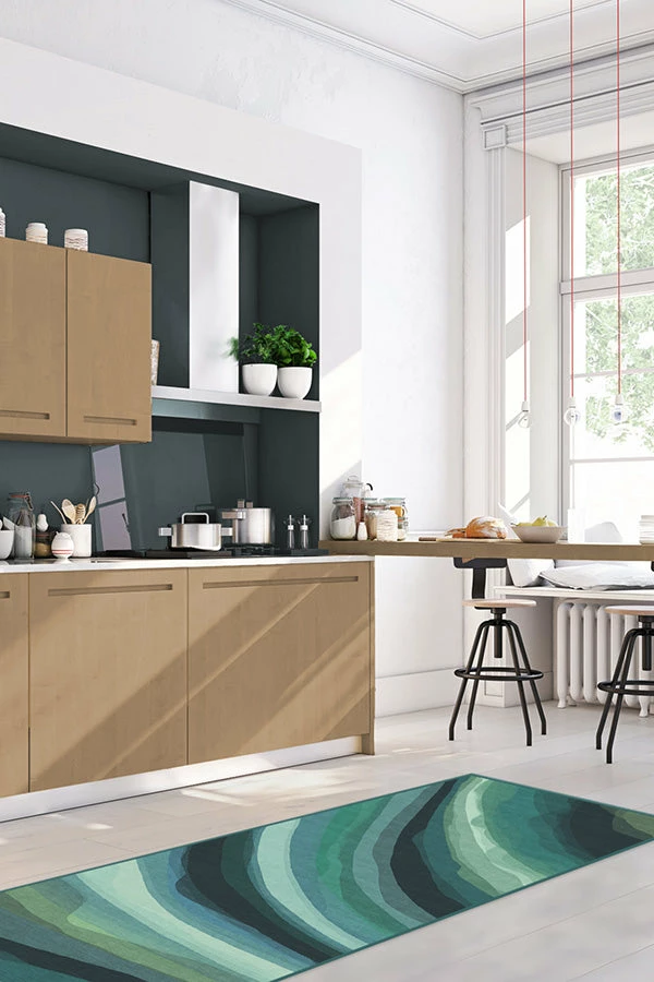 Level up your home’s interior with our breathtaking Watercolor Waves rug collection. Like peering down into the clear blue waters of the tropics, this rippled motif blends in layers and array of deep teals, turquoise, and spearmint resulting in a mesmerizing decorative accent. A brilliant way to embellish your urban or suburban home.
