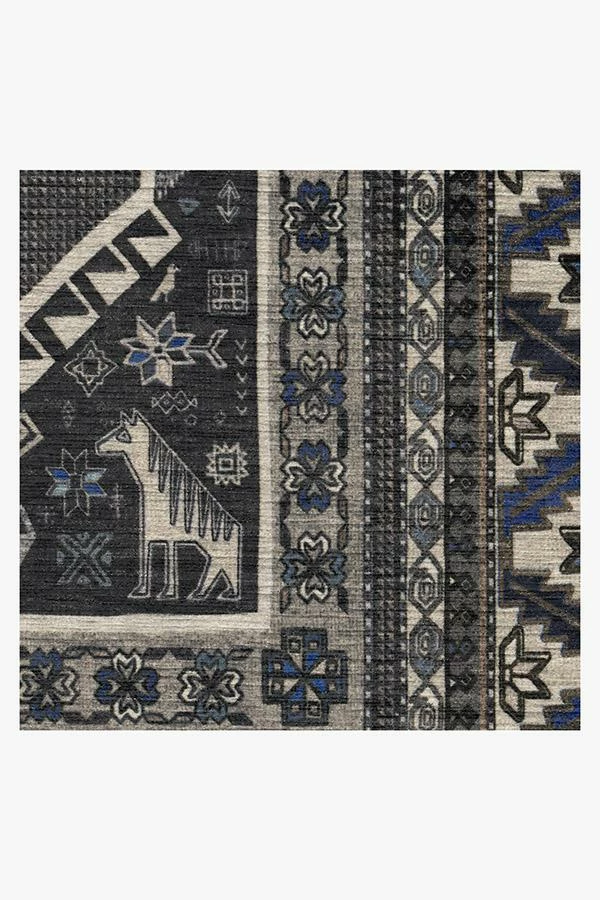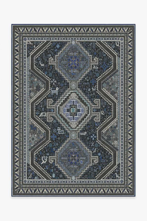 Zareen Steel Blue Rug captures the rich imagery of traditional Persian rugs. Inspired by designs that chronicled the lives of the nomadic people, this rug features a bordered style with animal figures in fields of hexagons and diamonds. Its beautiful gem-like design comes alive with brilliant hues of sapphire blue and dark grey.